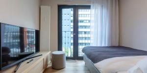 Das Homely! Skyview Apartment Frankfurt Airport, Fair, Rooftop, Gym! befindet sich in Frankfurt am Main und bietet eine Dachterrasse sowie ein Fitnesscenter. Das kürzlich renovierte Apartment mit einem einzigen Zimmer verfügt über kostenfreies WLAN und einen Blick auf die Stadt.