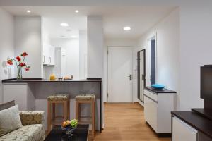 Les appartements, d’une superficie allant de 36 m² à 80 m², disposent d’un parquet élégant et de fenêtres panoramiques du sol au plafond qui inondent chaque espace de lumière naturelle. Les logements comprennent des formules combinant salon/chambre ainsi que des suites multi-pièces avec chambres séparées, espaces bureau ou vérandas. Tous sont équipés d’un coin cuisine complet avec machine à café, four, lave-vaisselle, micro-ondes et plaques de cuisson. Les salles de bains offrent baignoire ou douche ainsi que des articles de toilette gratuits tels que shampooing et savon corporel.